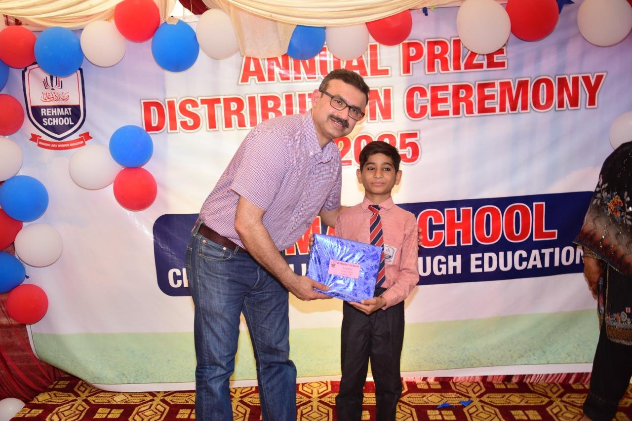 We are delighted to share that Dr. Muddassir Javaid, a distinguished orthopaedic surgeon from the UK, recently visited Rehmat School to celebrate our students' achievements. During a special prize distribution ceremony, Dr. Javaid honoured our students by presenting them with prizes for their outstanding accomplishments.
